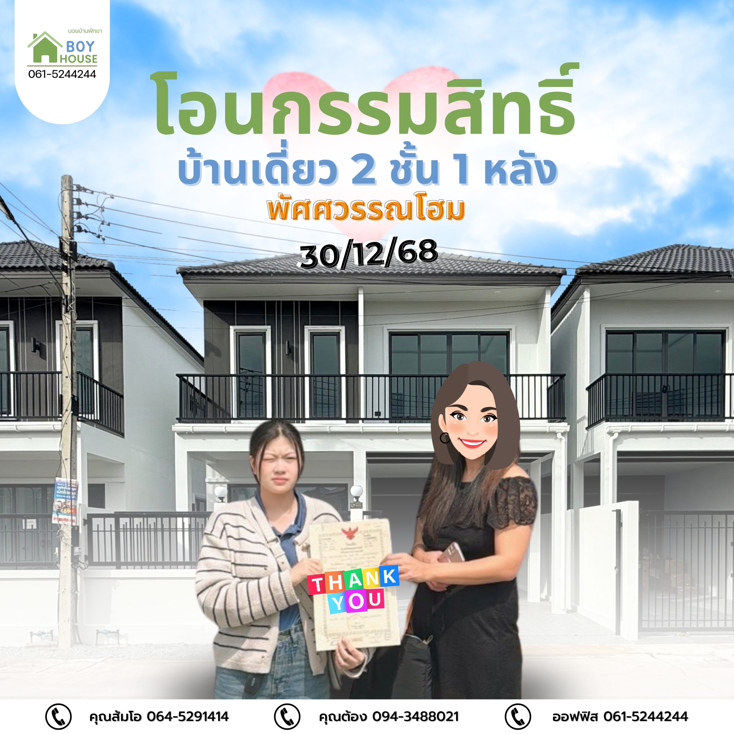 โอนกรรมสิทธิ์บ้านเดี่ยว 1 หลัง (30/12/68)